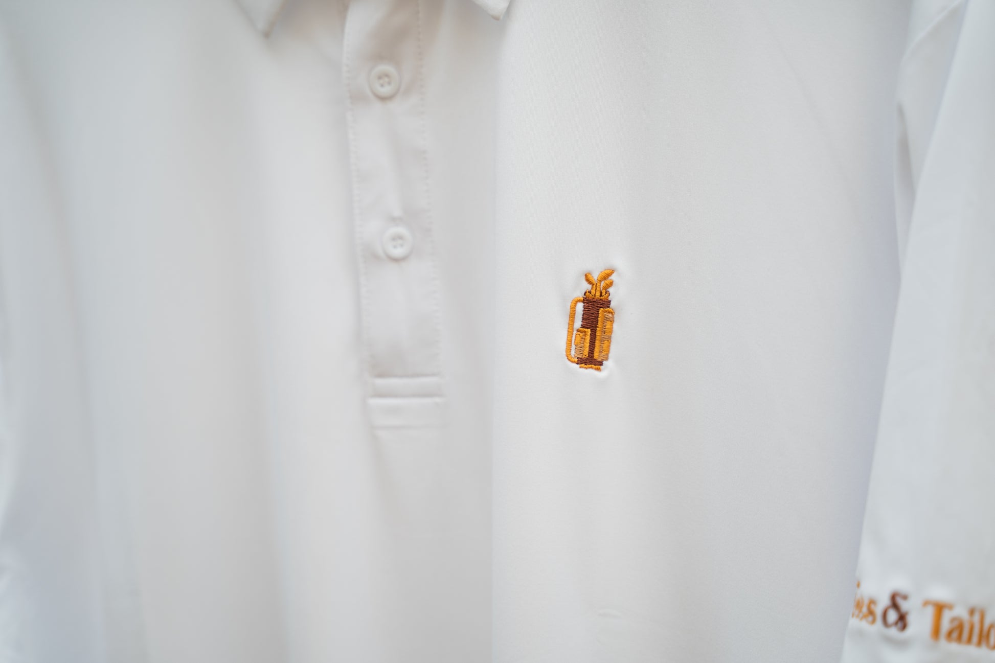 Tees & Tailors Adults White Golf Polo and Navy Midlayer